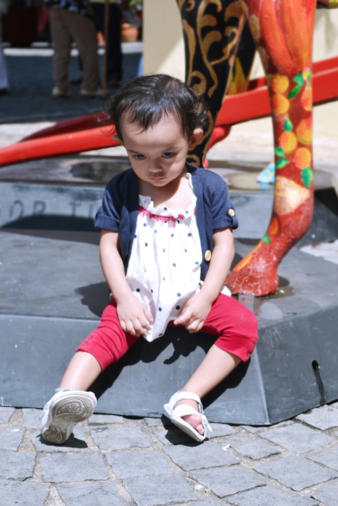 I wasn't planning to dress her up in leggings but I had to, because I forgot to bring her diaper cover! Ayra had to wear something to cover her diaper and that leggings was the only thing that goes well with the dress. You can't really tell it's actually a full-length legging, can you? The side slit with bow makes it looks even cuter as a capri legging, IMO.